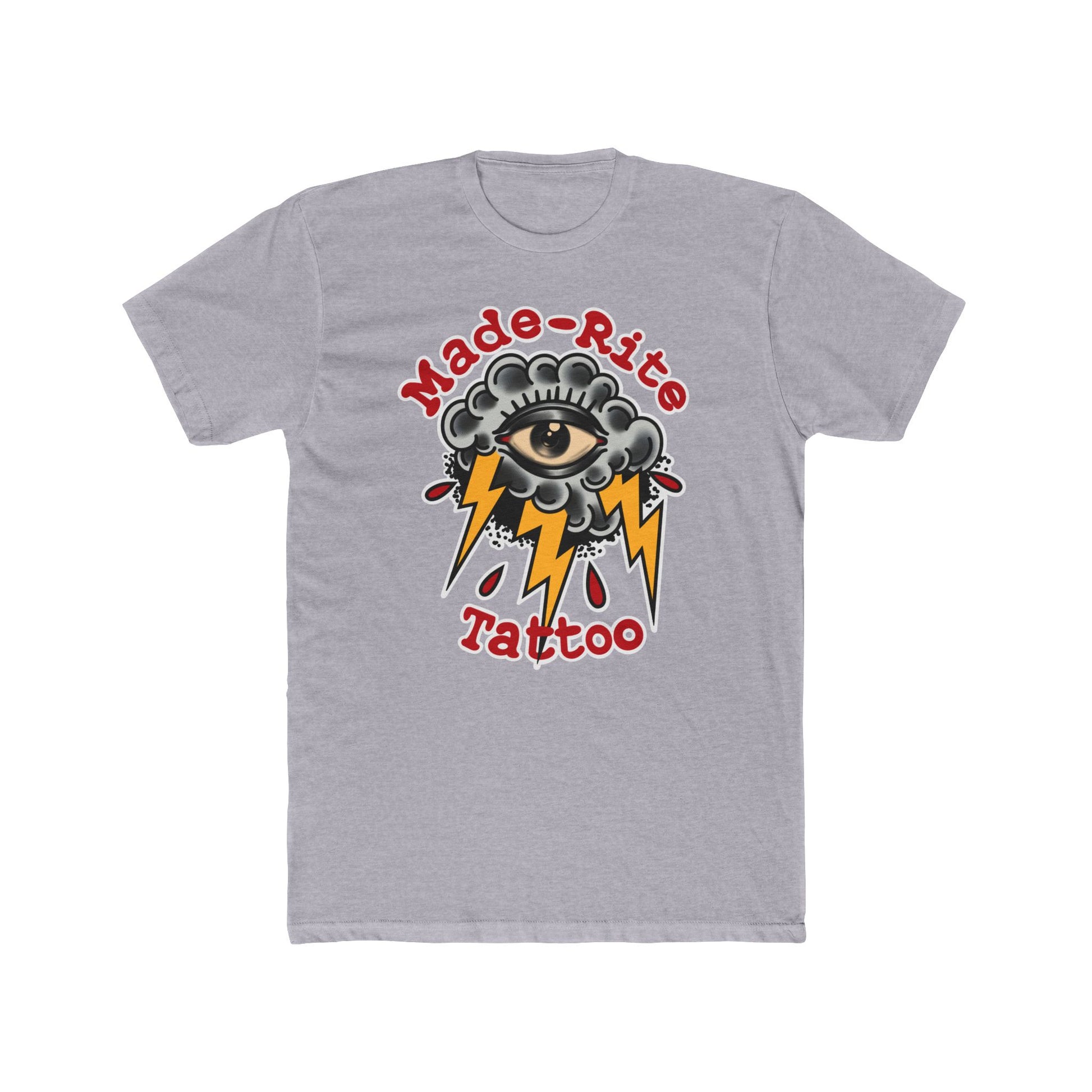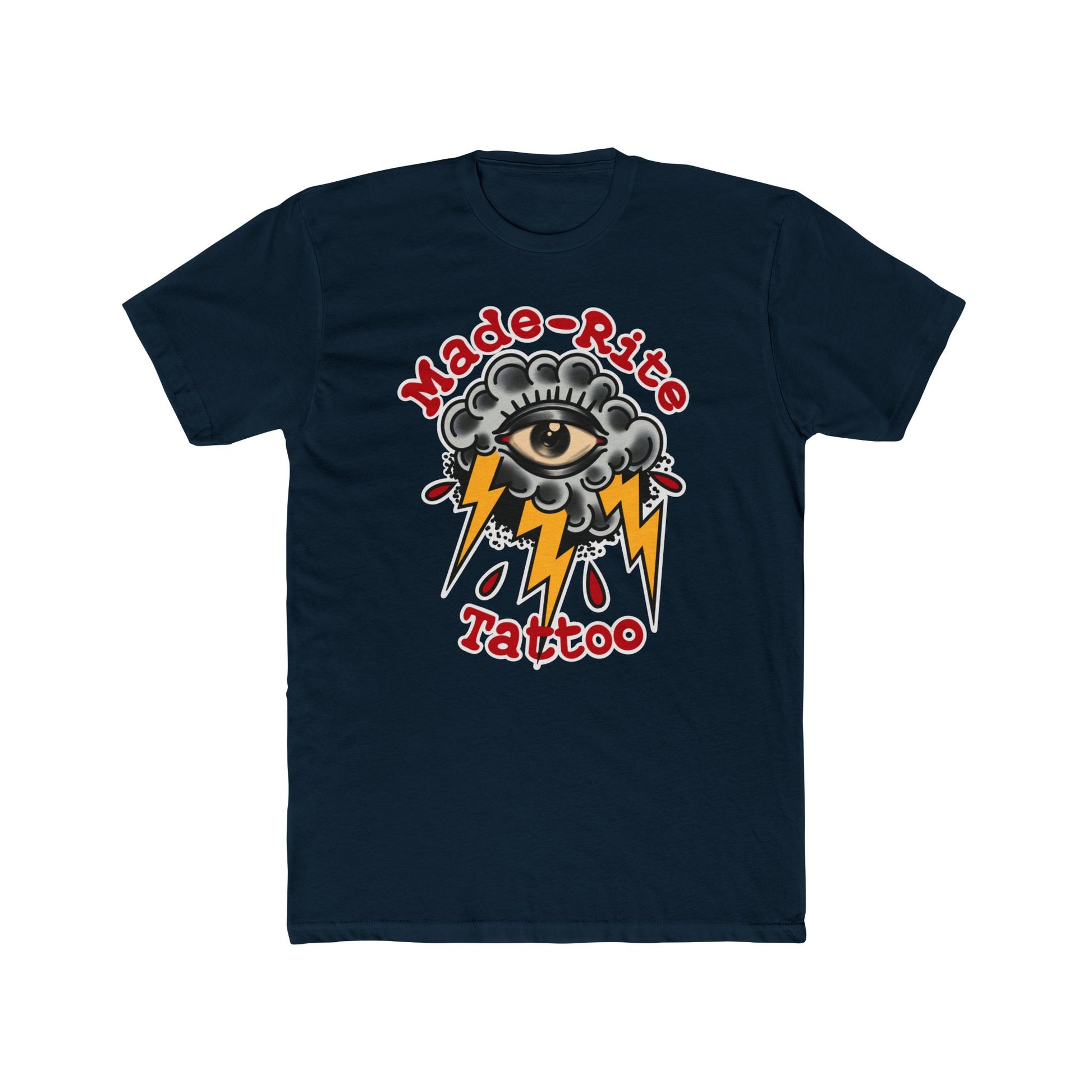 All seeing eye and storm cloud tattoo design. Made Rite tattoo old school traditional tattoo. Hand drawn retro 70s lettering style.